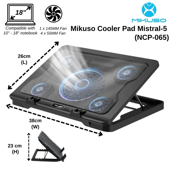 MIKUSO LAPTOP COOLING FAN MODEL: NCP-065 (145MM*1+55MM*5FANS) ADJUSTABLE ANGLE STAND