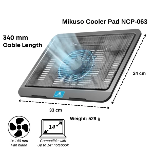MIKUSO LAPTOP COOLING FAN MODEL: NCP-074 FOR 14 INCH (140MM*2FAN)