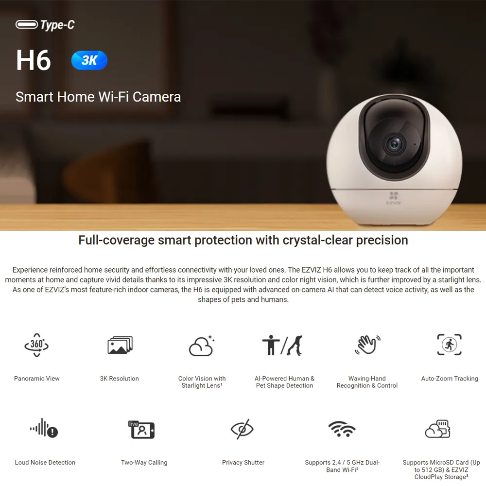 EZVIZ H6 5MP Pan & Tilt Wi-Fi Smart Home Security Camera