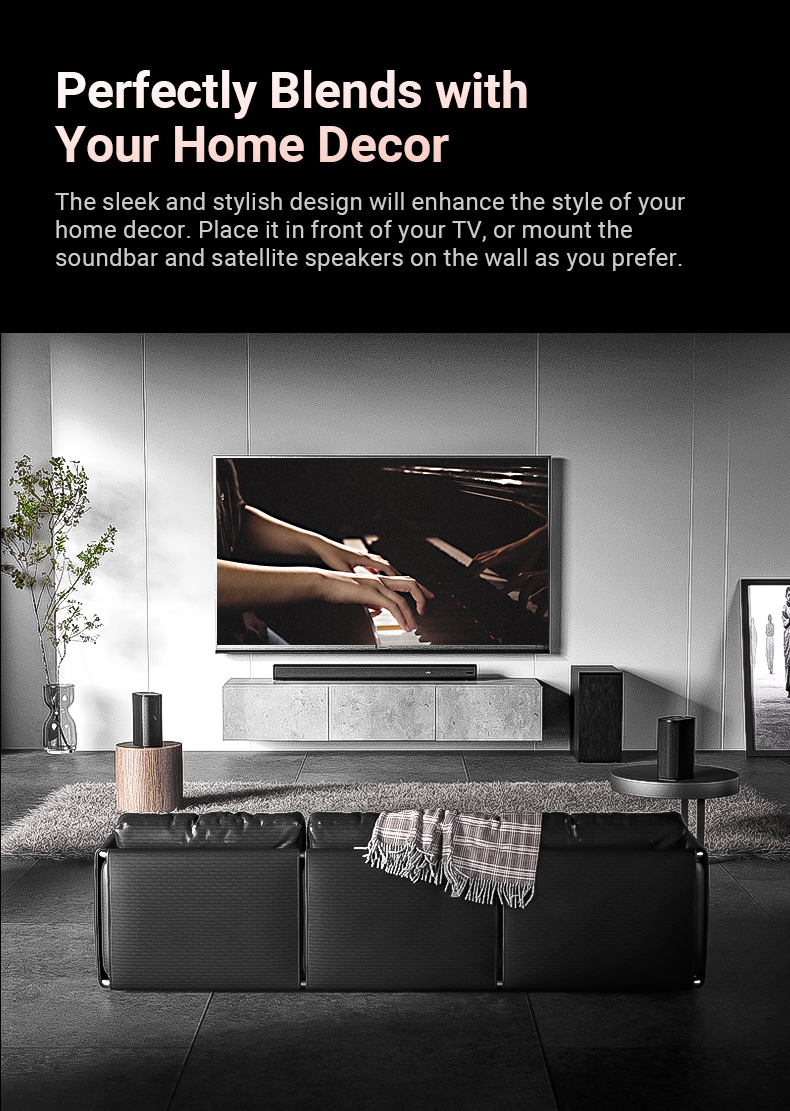 | Connectivity | BT, AUX, HDMI (ARC), USB, Optical, Coaxial |