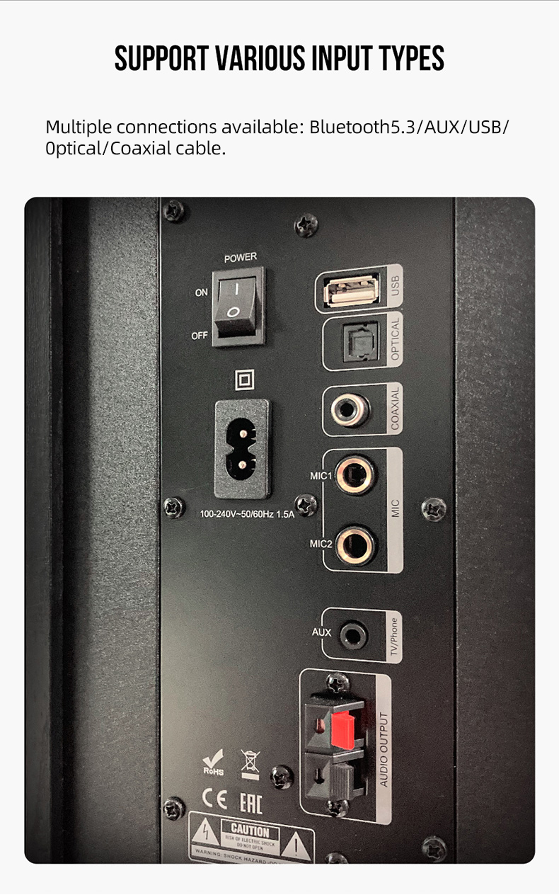 | Drivers | 4-inch Full Range, 8 inch Subwoofer, 1 inch Tweeter | |