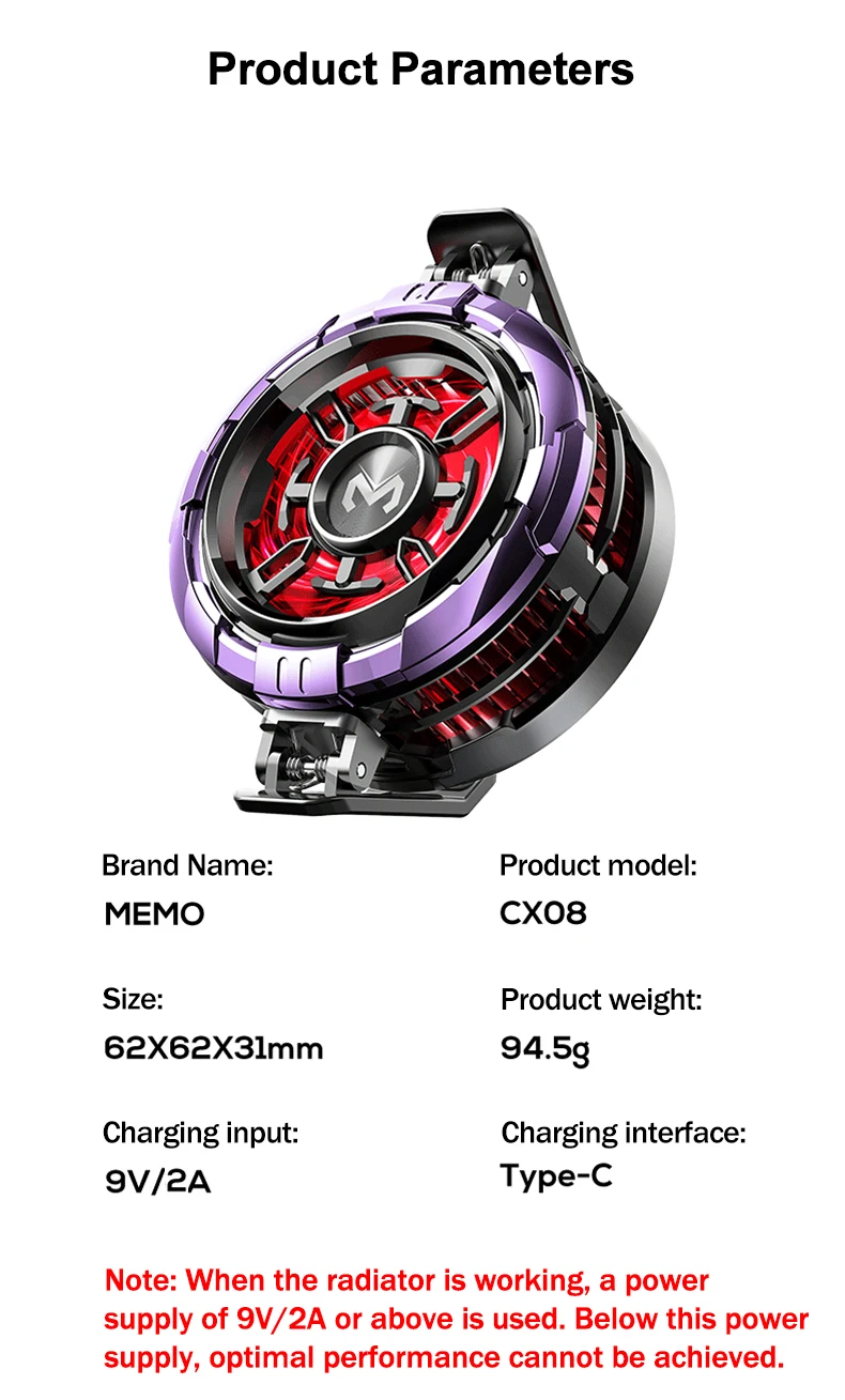- High-Efficiency Semiconductor Cooling: Equipped with a semiconductor cooling fan, the CX08 delivers rapid and reliable heat dissipation, keeping your device cool during even the most intense gaming marathons.