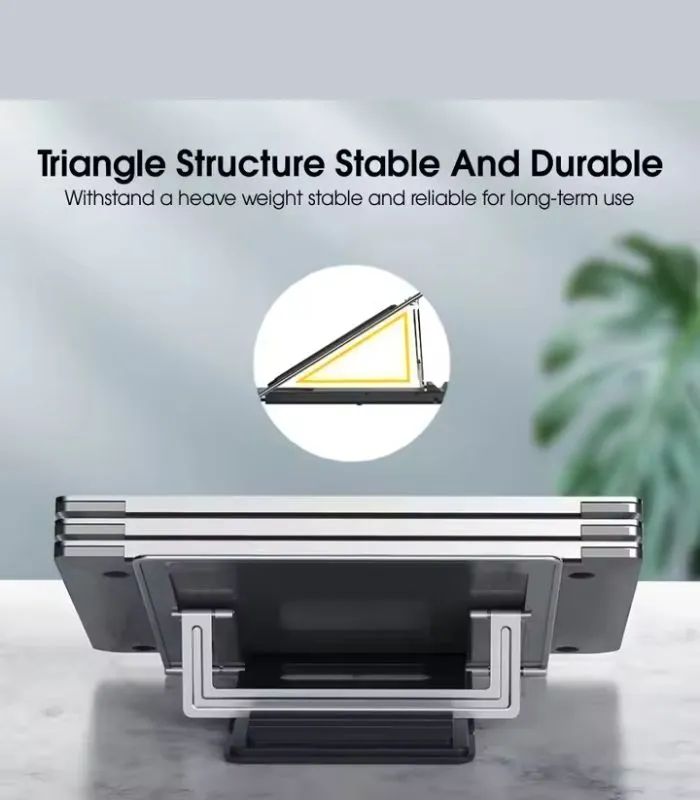 This Laptop stand combines strong metal and silicone. It is stylish and sturdy. Its durable structure ensures long-term support for your device while keeping it stable and secure on any desk or surface.