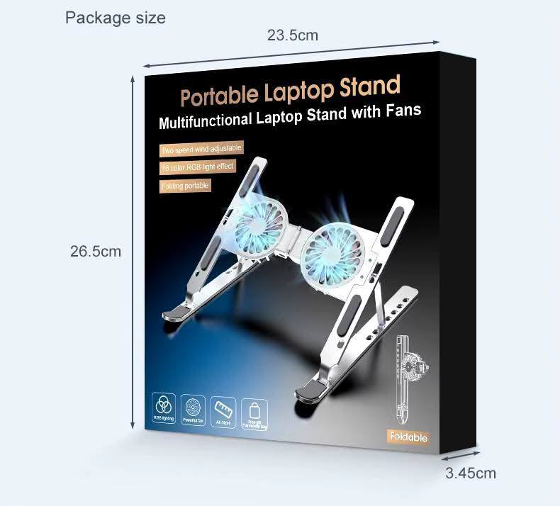 Portable Foldable Laptop Stand with Multifunctional Aluminum Alloy 2 Fans 16 Colors RGB Light Effect C9 Pro
